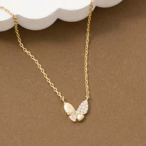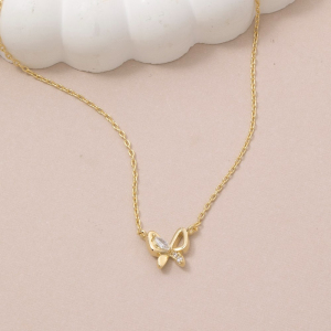 Gold Dipped Pave Cz Butterfly Pendant Necklace