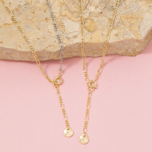Gold Figaro Chain Coin Drop Lariat Necklace
