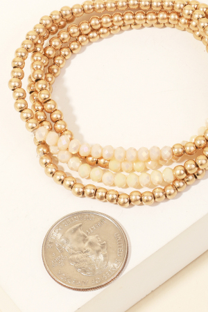 Stainless Steel Mini Flower Charms Layered Beaded Bracelet Set