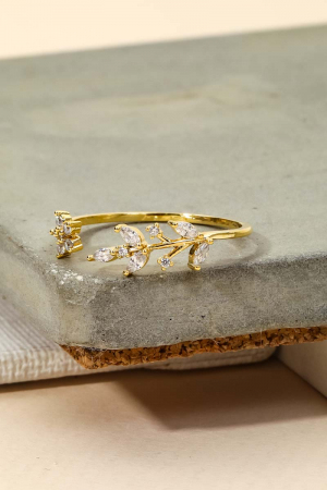 Delicate Rhinestone Leaf Open Ring