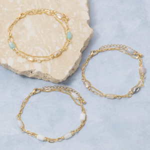 Faceted Rectangle Gems Mixed Chains Bracelet