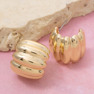 Gold Dipped Faceted Oval Gem Rectangle Stud Earrings
