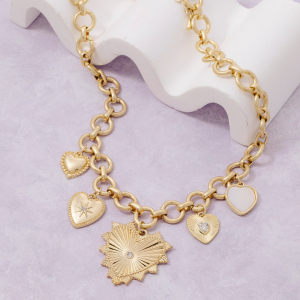 Multi Heart Charms Hoop Chain Necklace