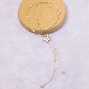 Station Pearl Charms Butterfly Tie Chain Necklace