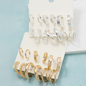 Mixed Pearl And Metallic 10 Pair Earrings Set