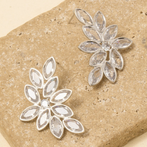 Faceted Oval Cz Fern Cluster Stud Drop Earrings