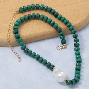 Pearl Pendant Green Stone Beaded Necklace