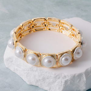 Square Tile Pearl Stretch Bracelet