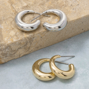 Metallic Round Loop Stud Earrings