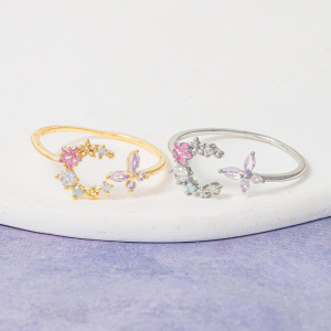 Gold Dipped Cz Moon Star And Butterfly Ring