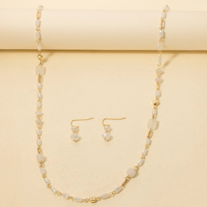 Irregular Marble Resin And Metallic Beaded Bracelet Set