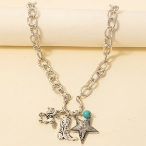 Western Cowboy Boot And Star Pendants Chain Necklace