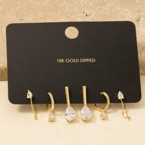 Gold Dipped Mixed Cz Tear Drops Earrings Set