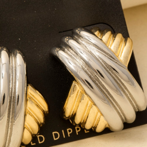 Gold Dipped Two Tone Hash Layered Hoop Earrings
