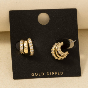 Gold Dipped Cz Pave Wide Layered Hoop Earrings