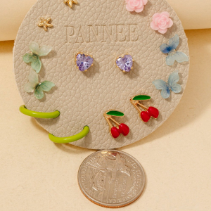 Flower Cherry And Butterfly Mixed Stud Earrings Set