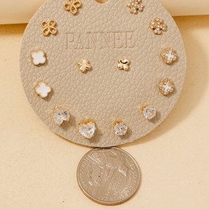 Pearl Pave Heart Bow And Charms Mixed Earrings Set