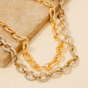 Gold Dipped Wide Circle Ring Link Classic Chain Necklace