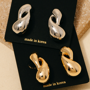 Gold Dipped Curved Tear Drop Hoop Earrings