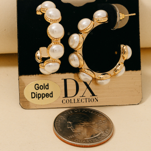 Gold Dipped Pearl Studded Hoop Earrings