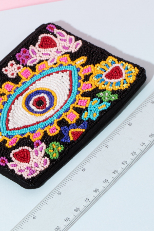 Zigzag Striped Evil Eye Beaded Coin Purse