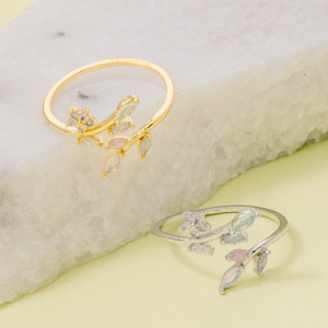 Cz Heart And Metallic Flowers Solid Link Open Band Ring