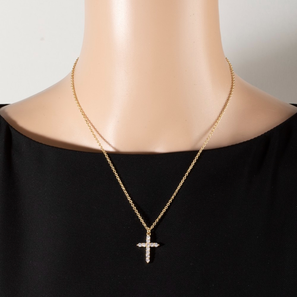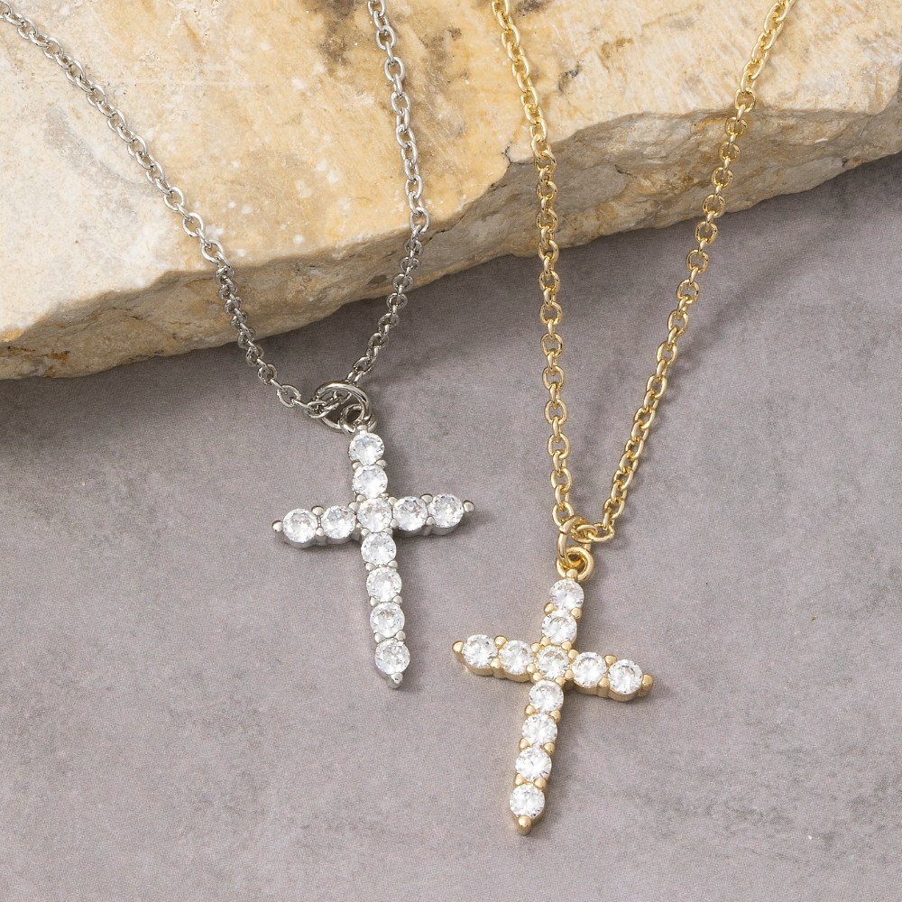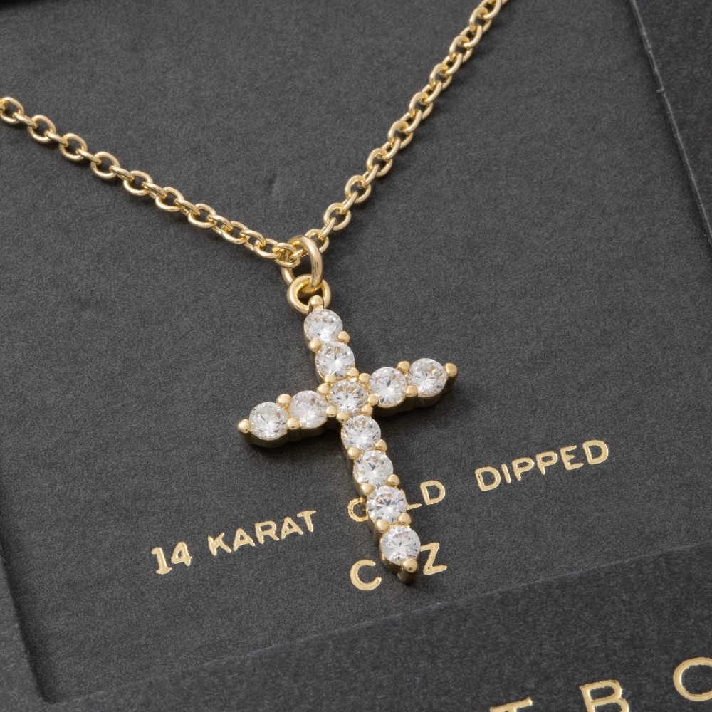 - Perfect for any fashion-forward individual, this pendant necklace showcases an alluring 14k gold dipped cubic zirconia cross design. Achieve a perfect balance of style and sophistication with this versatile pendant necklace, the ultimate choice for the fashion-savvy individual. Available in GD,WG. This item is sold in packs of 1.