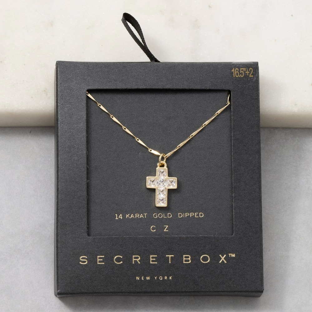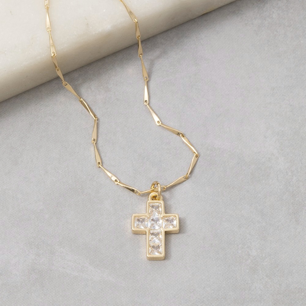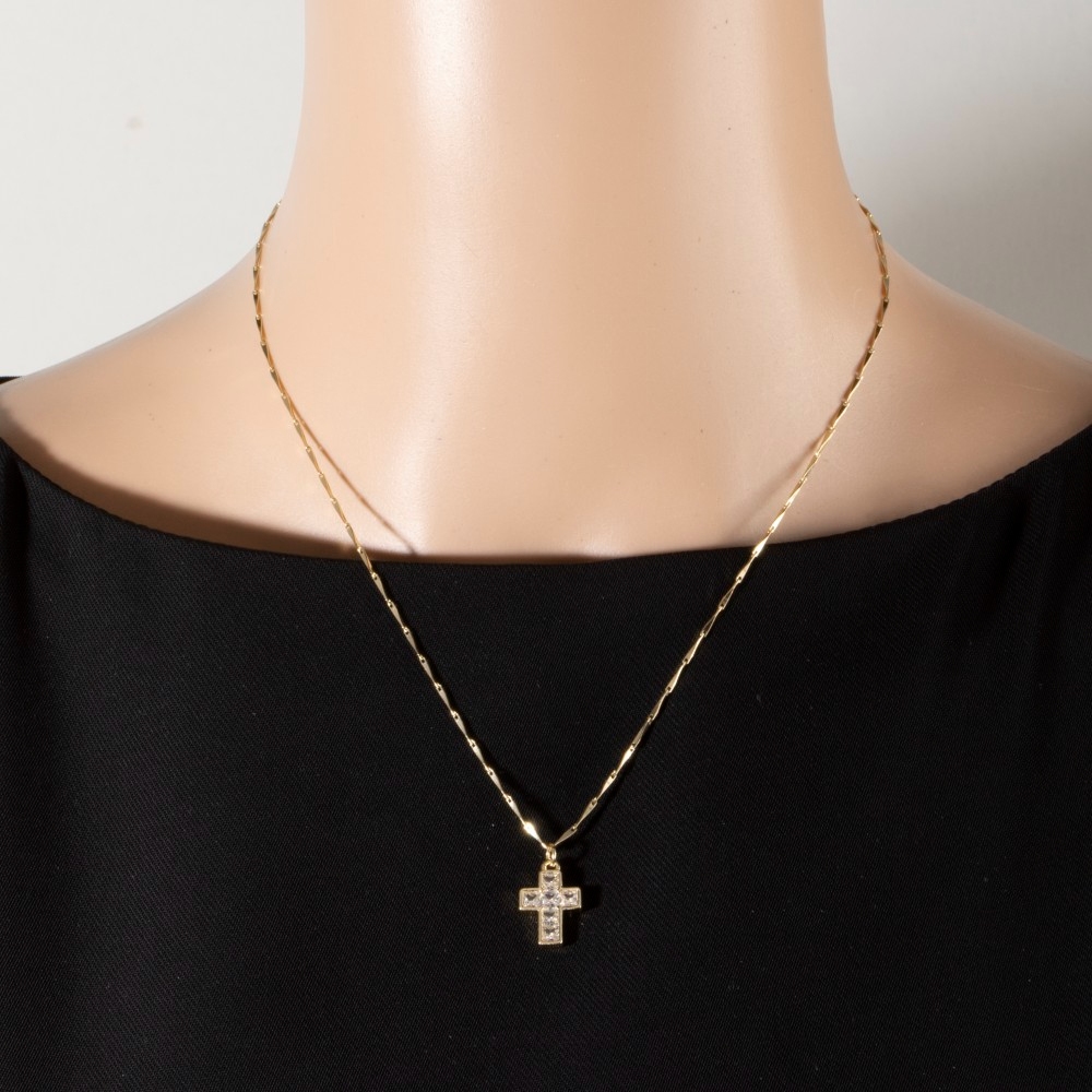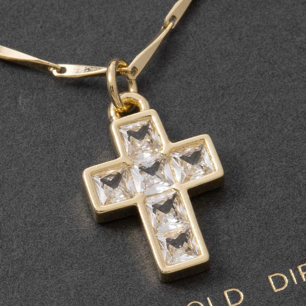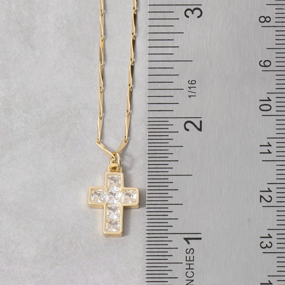 • Effortlessly chic and sophisticated, this necklace boasts a magnificent 14k gold dipped cubic zirconia square cross design. Infuse your ensemble with a touch of sophistication using this versatile necklace, a game-changer in the world of fashion. Available in GD. This item is sold in packs of 1.