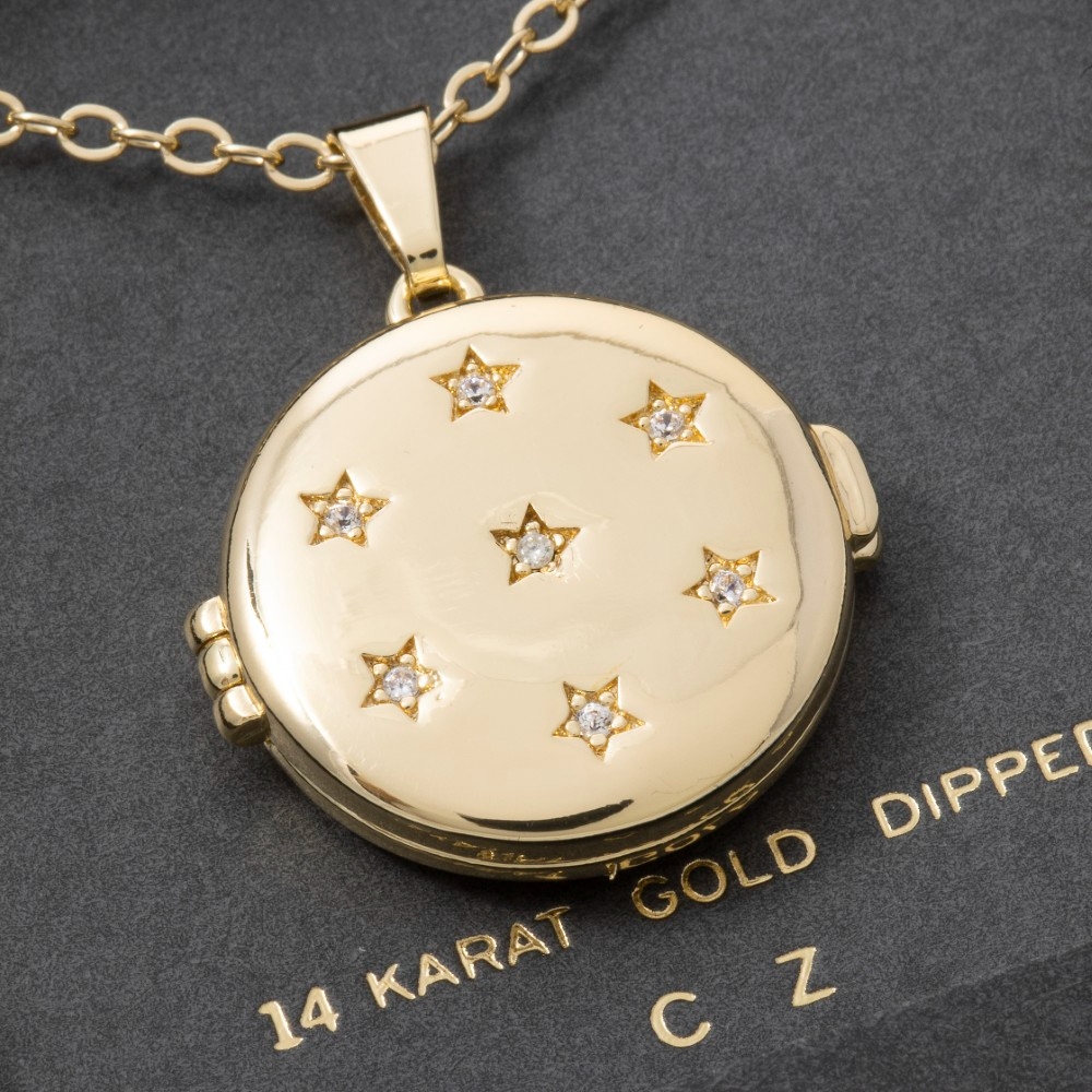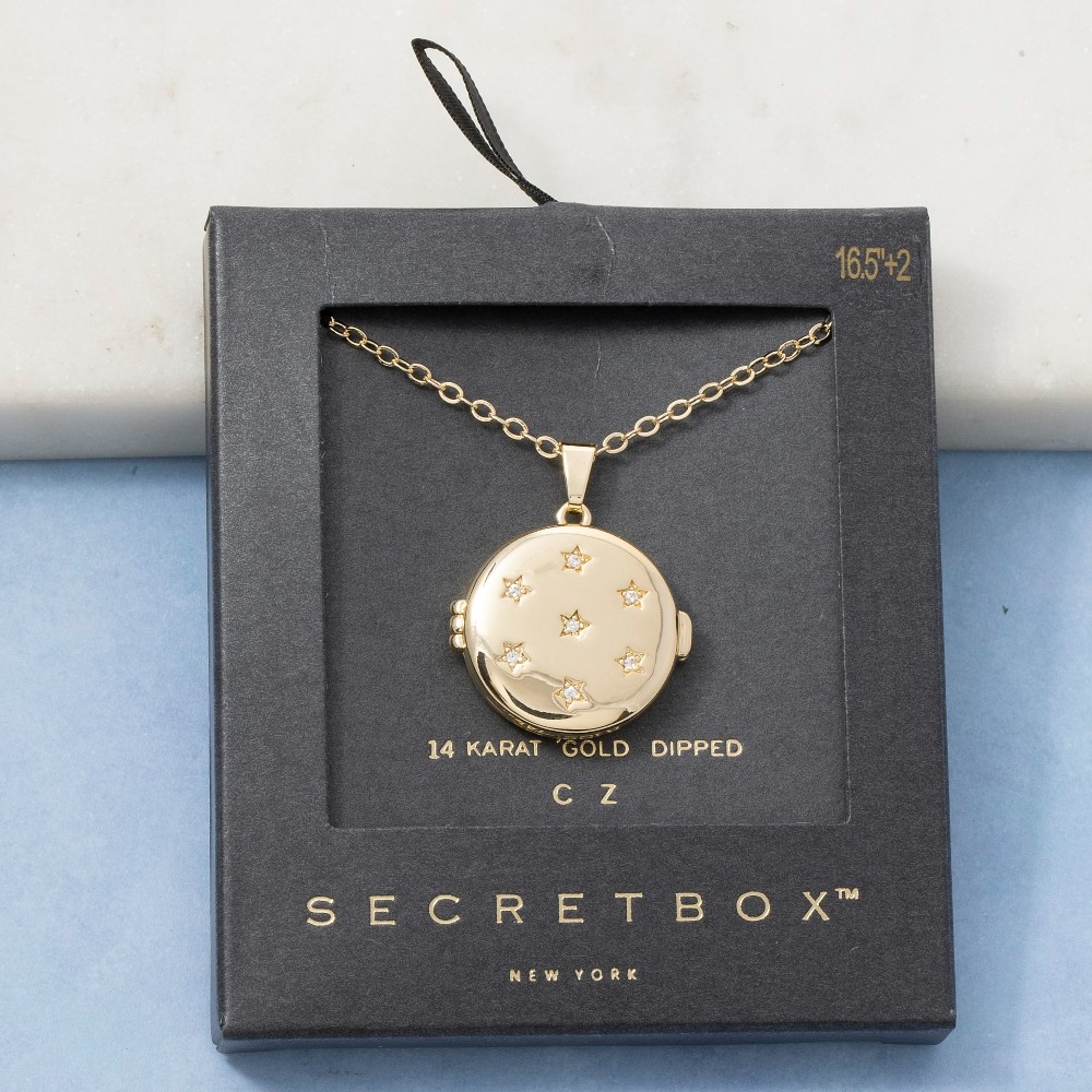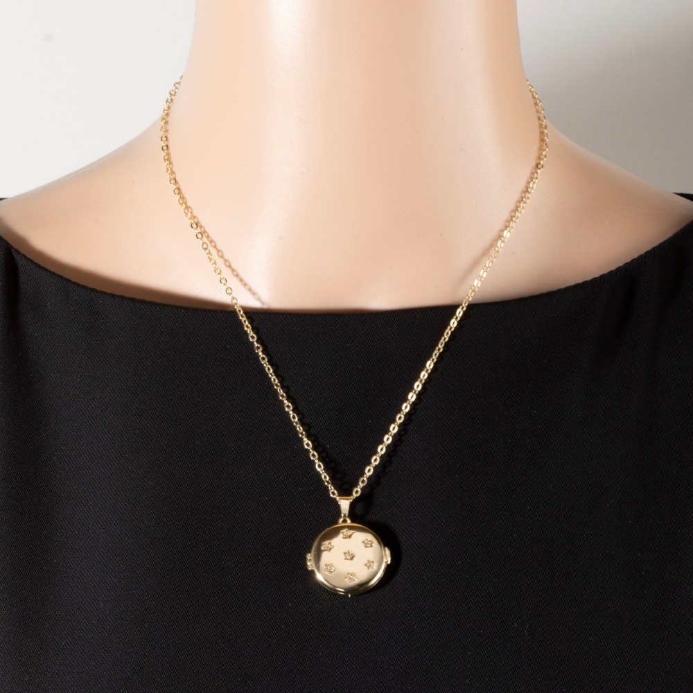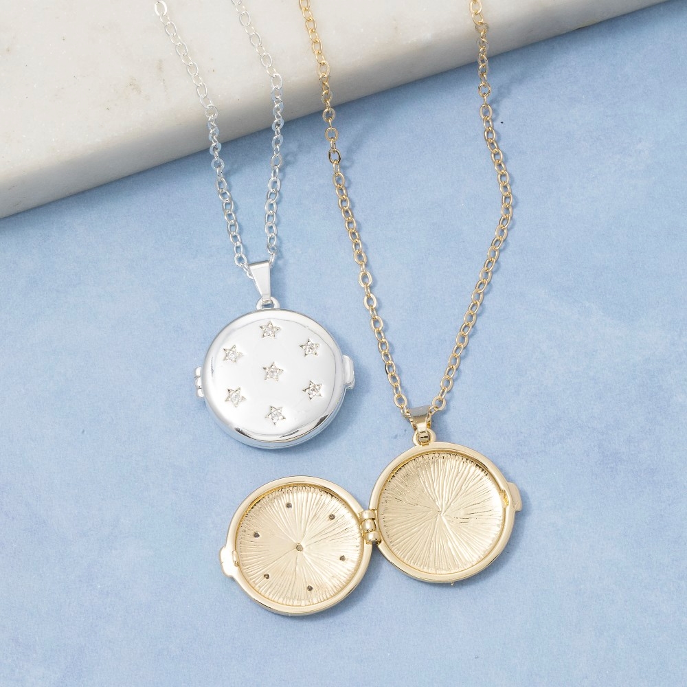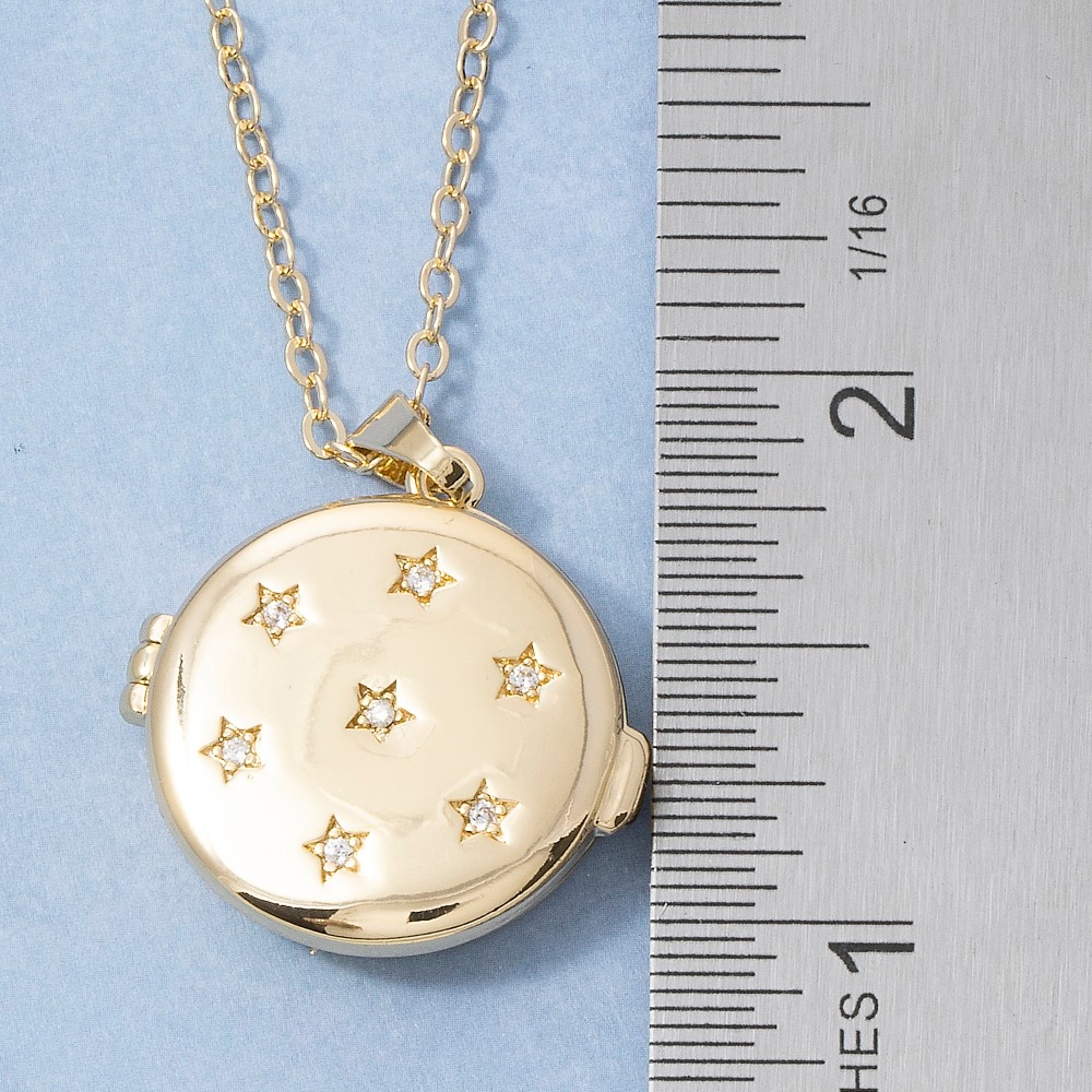 • A versatile and stylish addition to any wardrobe, this necklace shows off a distinctive 14k gold dipped cubic zirconia star round locket design. Discover a new level of fashion versatility as this necklace effortlessly elevates the allure of your attire. Available in GD, WG. This item is sold in packs of 1.
