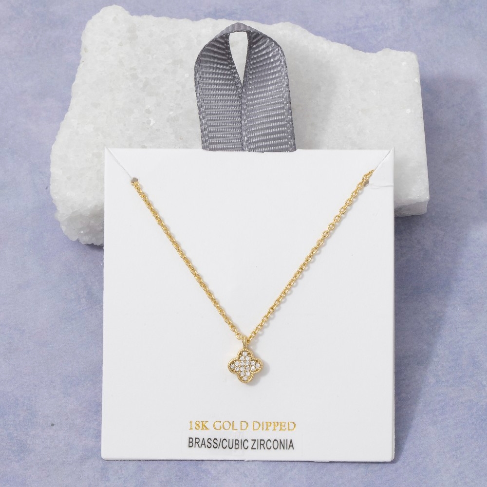 The perfect way to showcase your unique style, this pendant necklace presents a striking 18k gold dipped cubic zirconia clover design. Elevate your fashion IQ with this versatile pendant necklace, designed to seamlessly integrate into any style profile. Available in GDCRY, RHCRY. This item is sold in packs of 1.