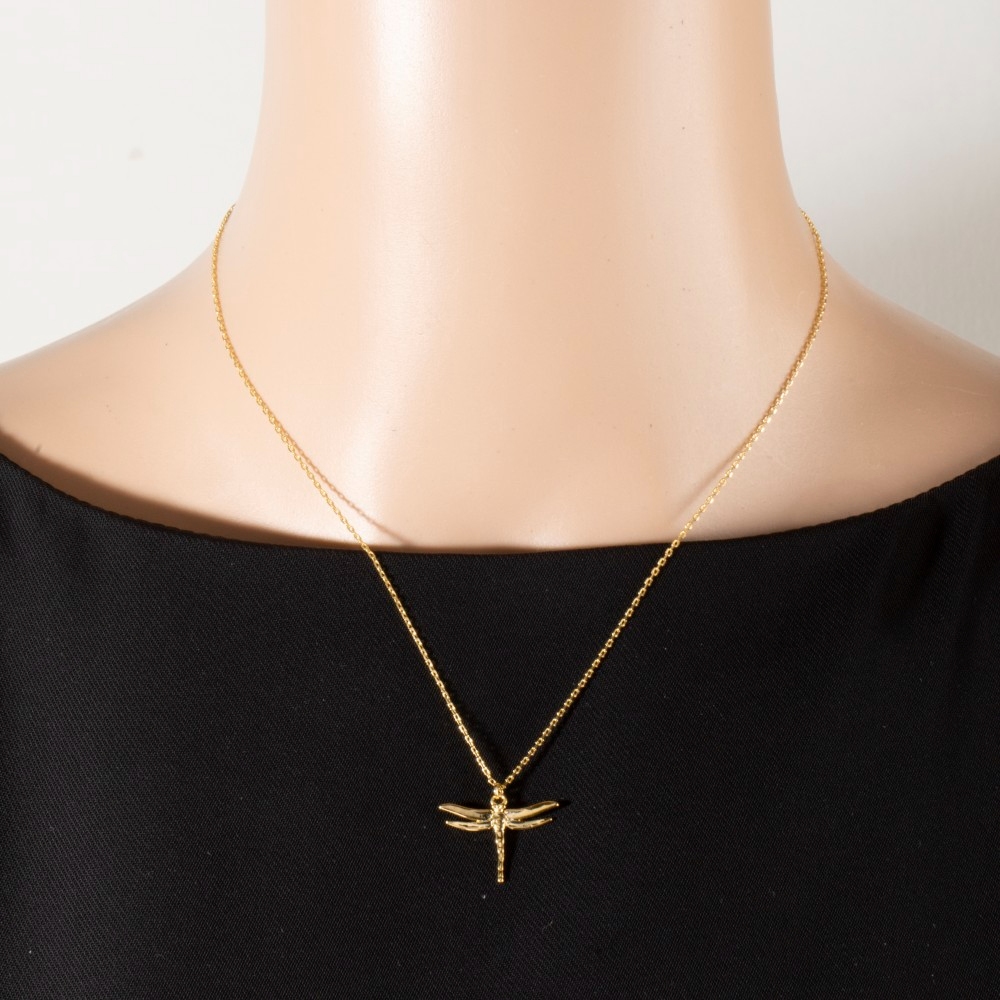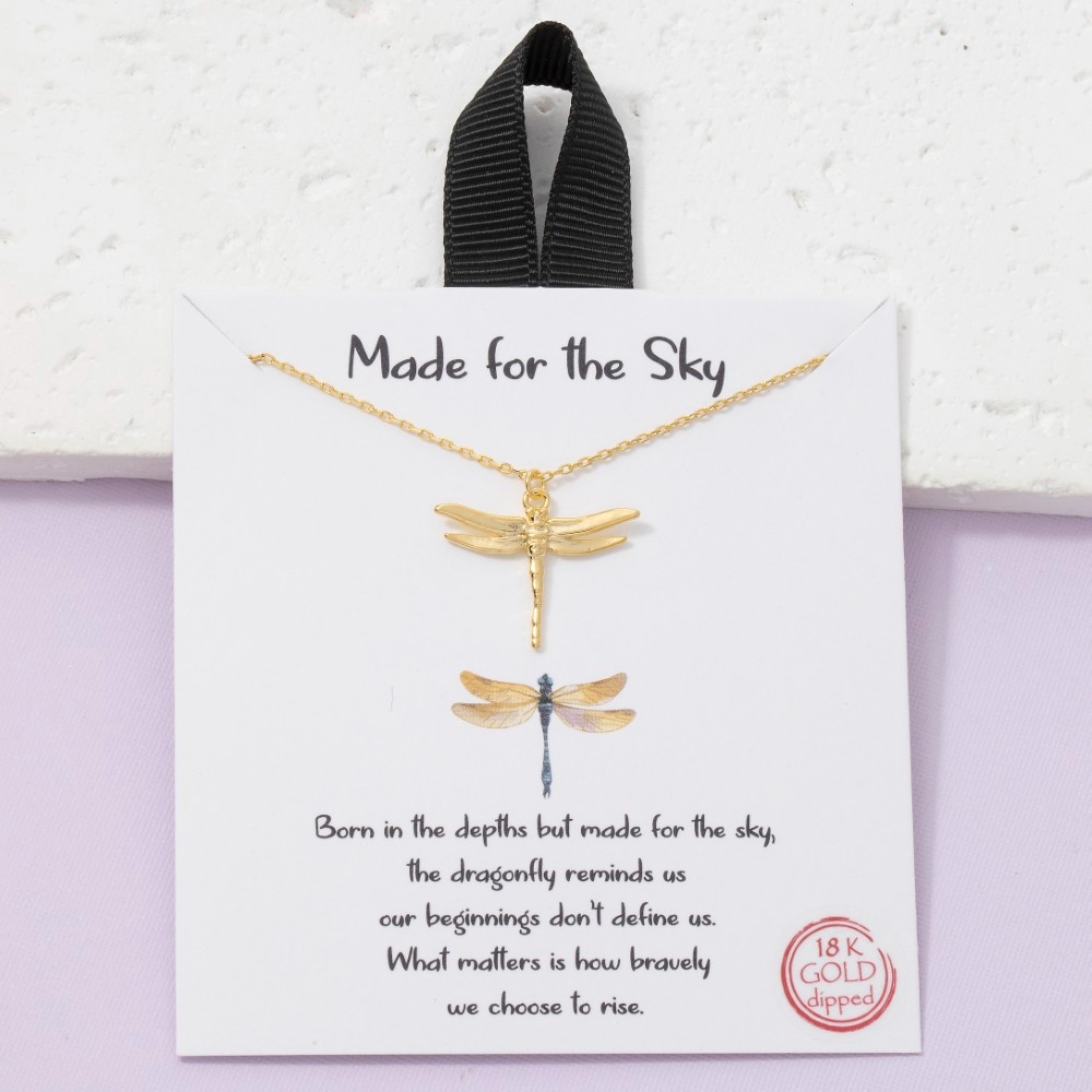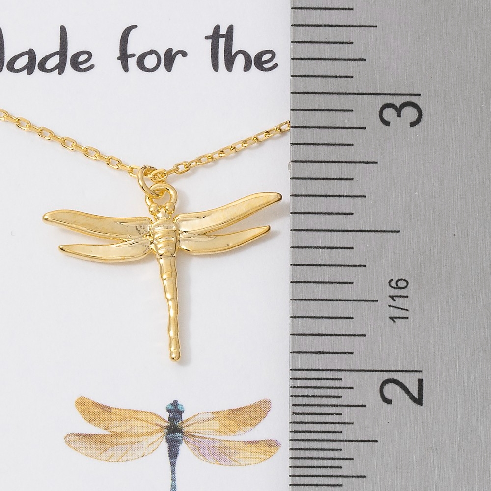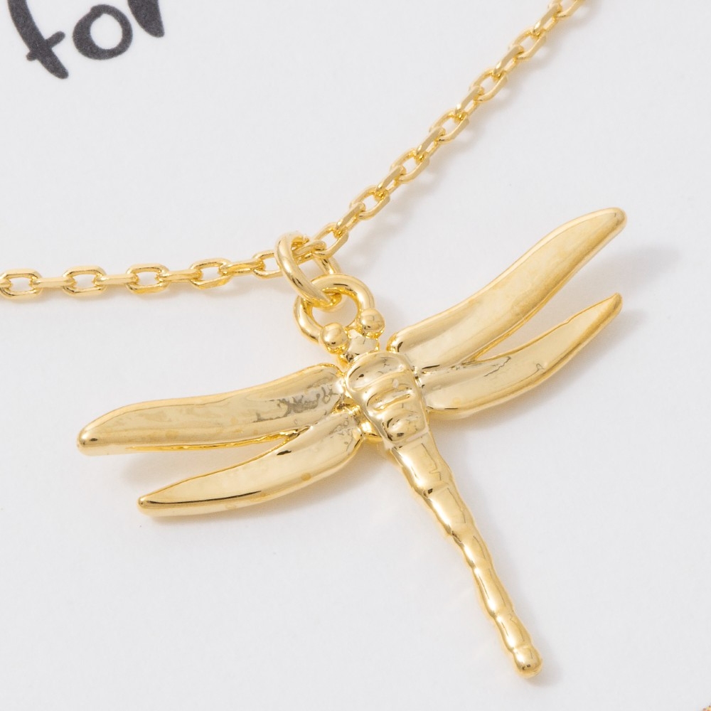 - This piece is designed to be both stylish and functional, this pendant necklace introduces an exceptional 18k gold dipped dragonfly design. This item is the perfect finishing touch to any outfit, adding a touch of glamour and sophistication. Available in GD, RH. This item is sold in packs of 1.