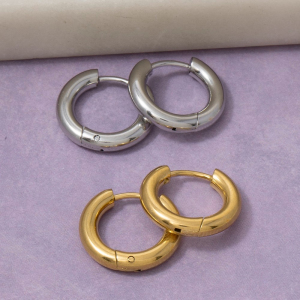 Stainless Steel Chunky Thick Huggie Hoop Earrings