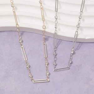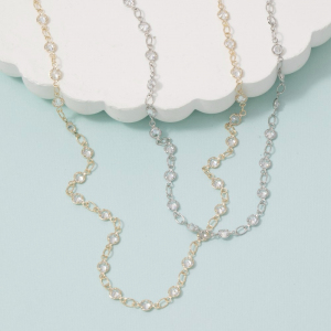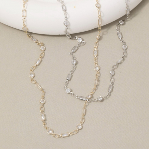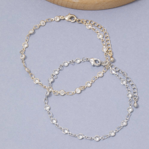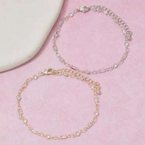 Mixed Round & Baguette Cz Station Chain Bracelet