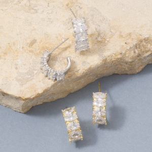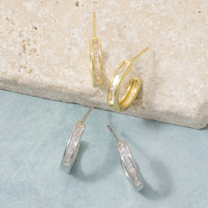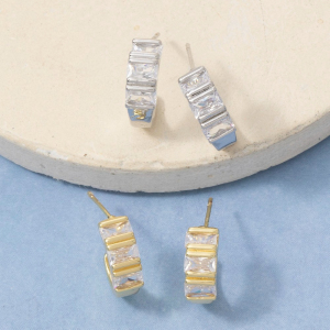 Triple Baguette Cz Bar Huggie Hoop Earrings