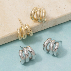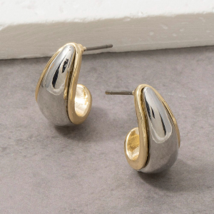 Two-Tone Wide Dome Huggie Hoop Earrings