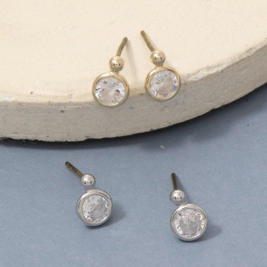 Oval Cz Bezel Stud With Long Chain Tassel Drop Earrings