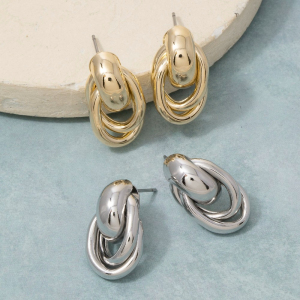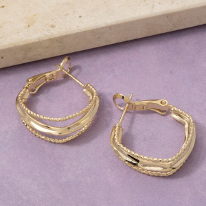 Gold Plated Two Tone Layered Oval Hoop Earrings