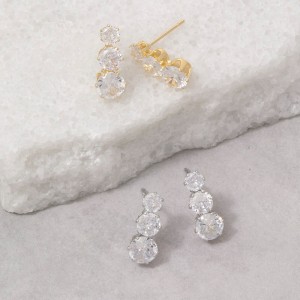 Triple Graduating Cz Bar Ear Crawler Earrings