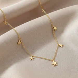 Gold Dipped Mini Heart Station Charms Chain Necklace