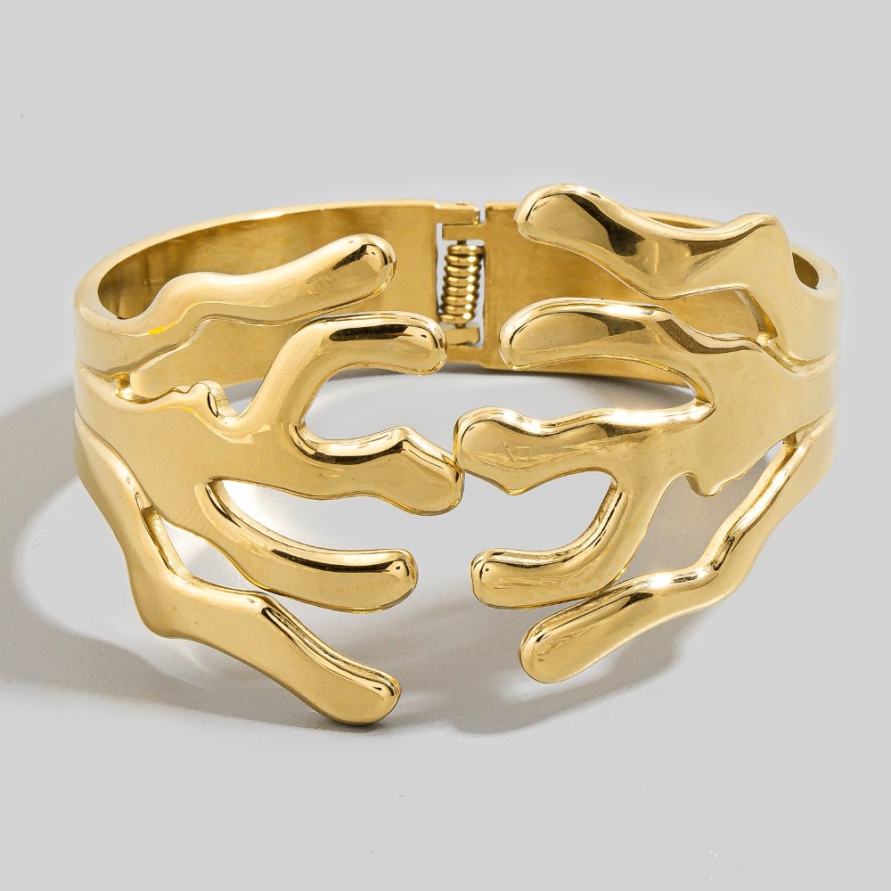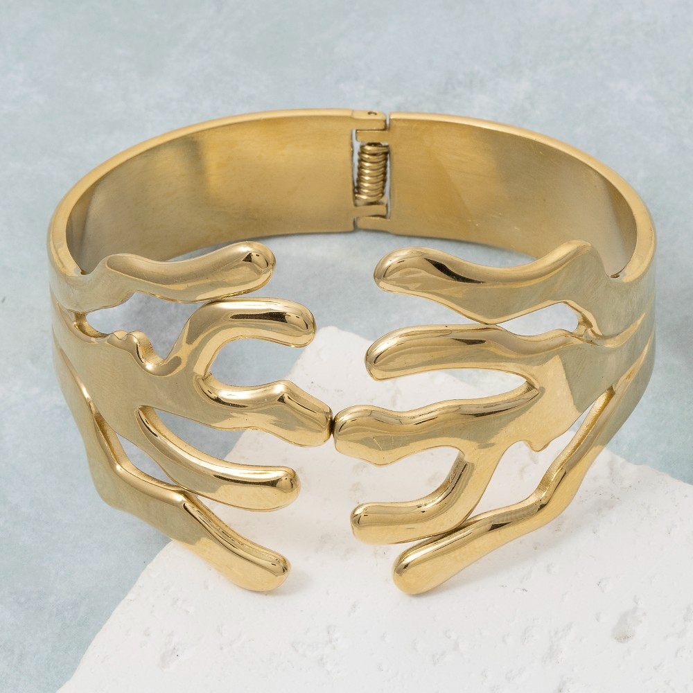 This piece is designed to be both stylish and functional, this cuff bracelet incorporates a flawless abstract coral hinged design. Take your style to the next level by incorporating this versatile cuff bracelet, a key element in achieving a polished look. Available in SGD. This item is sold in packs of 1.