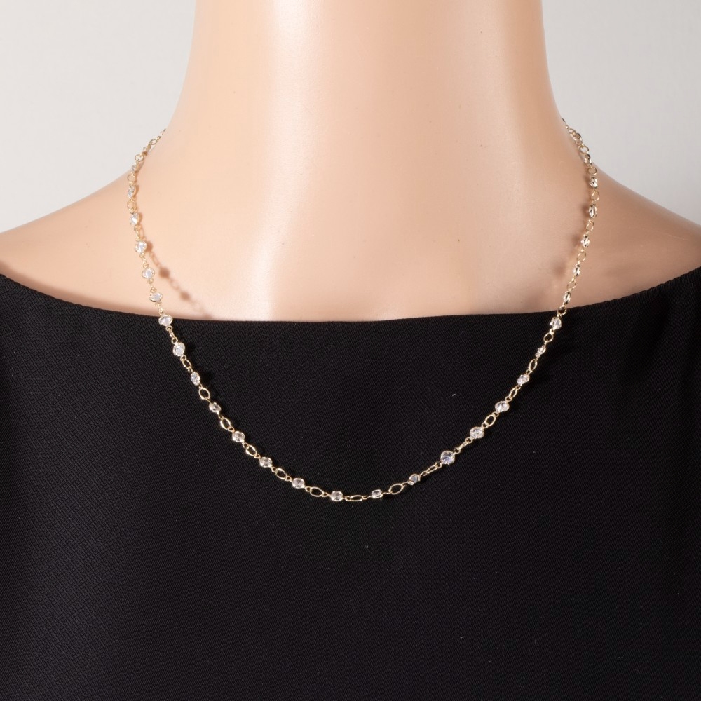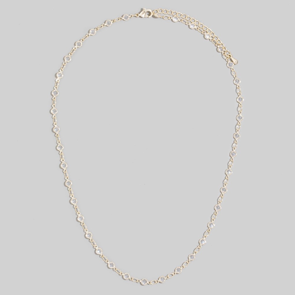 Sleek and modern, this necklace encompasses a grand all-round cubic zirconia bezel station design. Discover a new level of fashion versatility as this necklace effortlessly elevates the allure of your attire. Available in G, S. This item is sold in packs of 1.