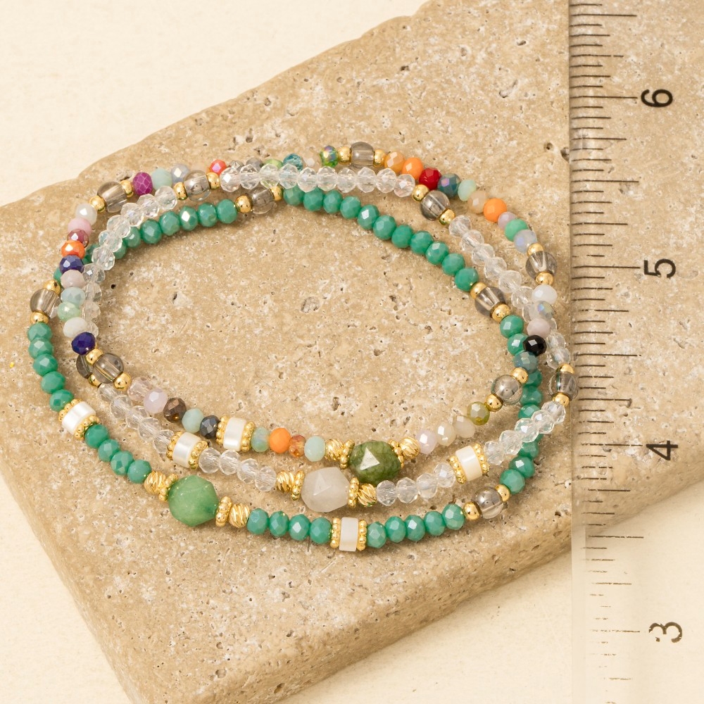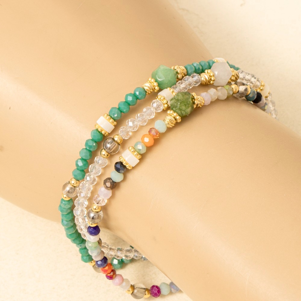 - Add some edge to your look, this bracelet embodies a sophisticated three piece assorted bead set design. Elevate your everyday style with this versatile bracelet, a simple yet impactful addition to your fashion repertoire. Available in MULTI. This item is sold in packs of 1.