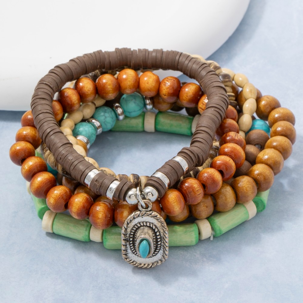 Make a statement, this bracelet carries a charming assorted beads western cowboy hat charm set design. The perfect bracelet for completing any outfit, whether you're dressing up or keeping it casual. This item is sold in packs of 1.