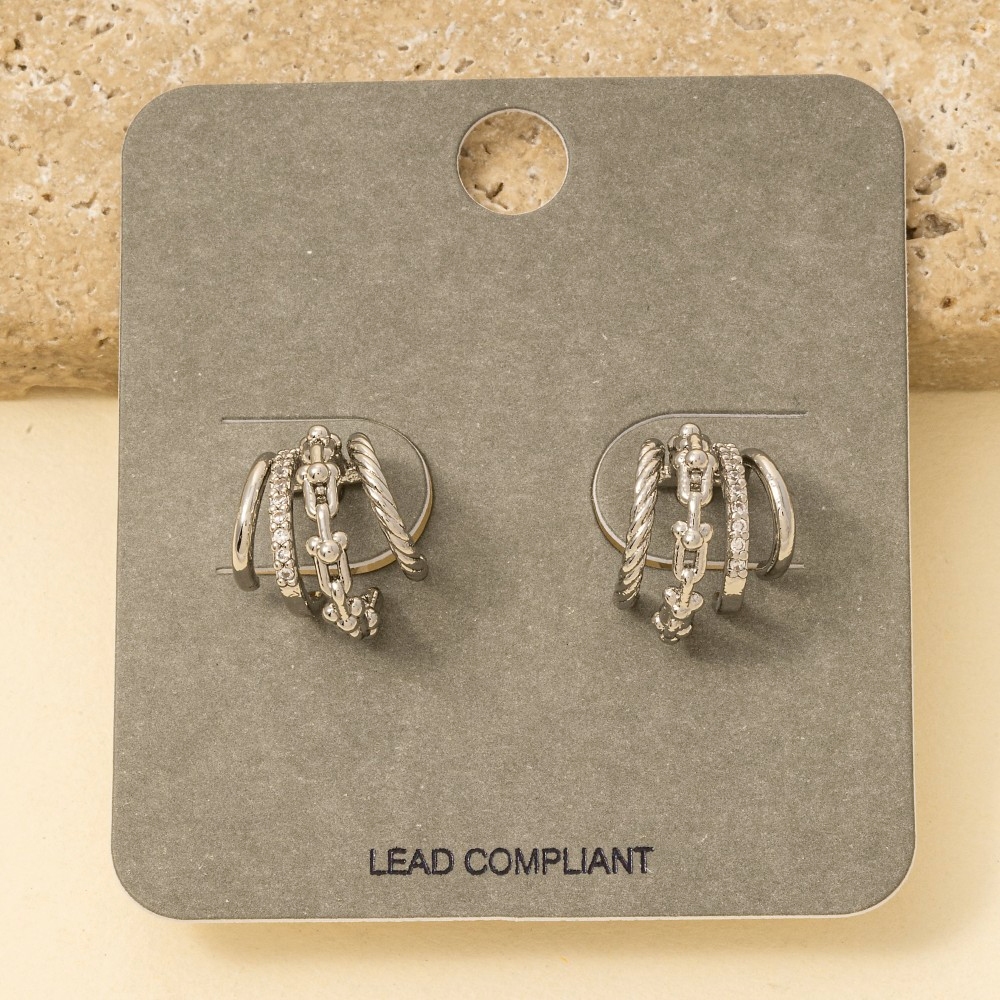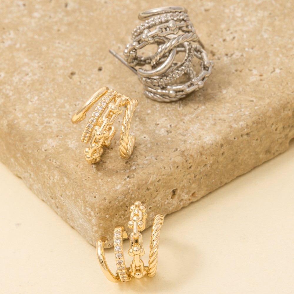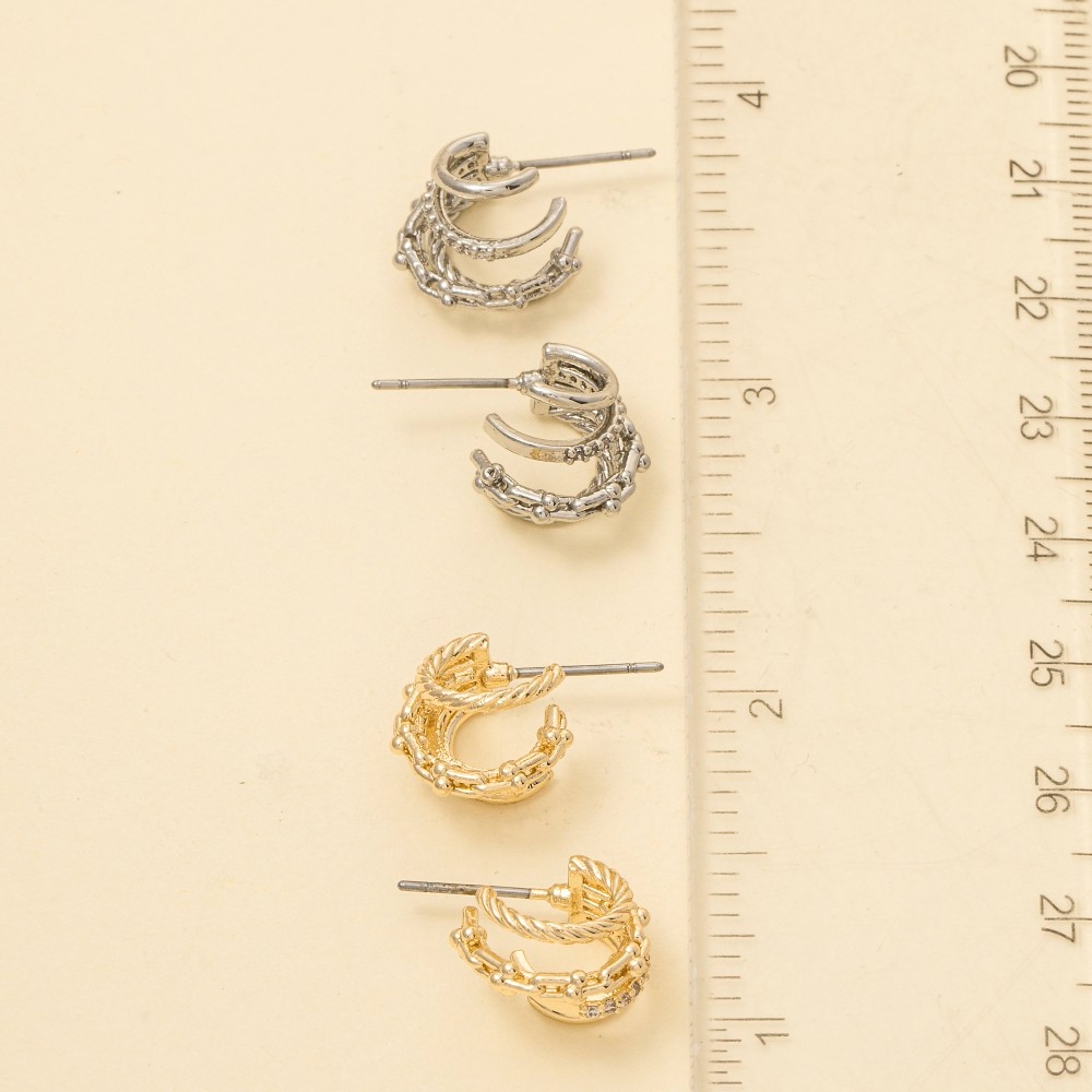 Elevate your style with something unique and daring, this pair of hoop earrings embodies a sophisticated assorted mini four line design. Perfect for any occasion, this versatile pair of hoop earrings will enhance any outfit you wear. This item is sold in packs of 12.