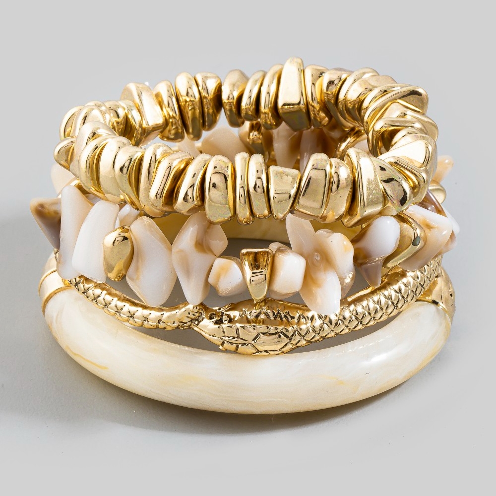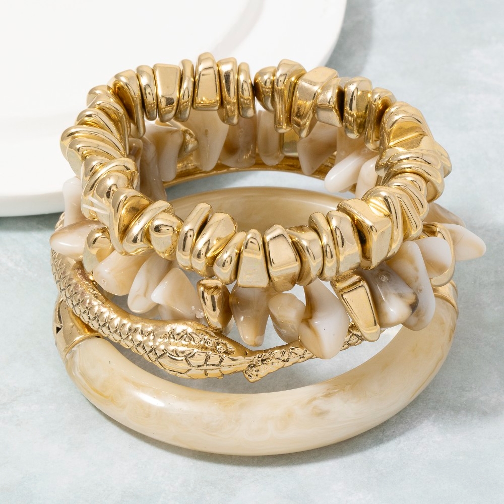 • Elevate your style with something unique and daring, this bangle bracelet boasts a magnificent assorted stone beads and snake design. A perfect addition to your wardrobe that effortlessly enhances your style. This item is sold in packs of 1.
