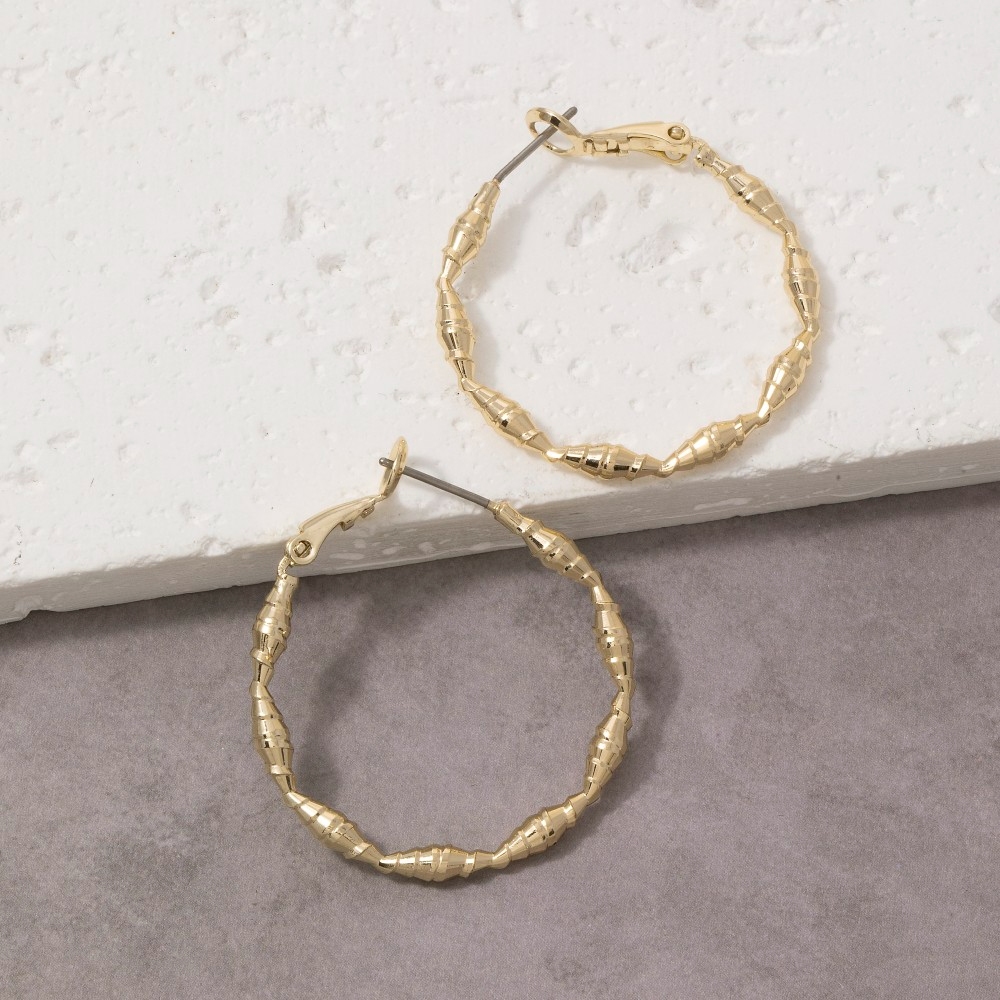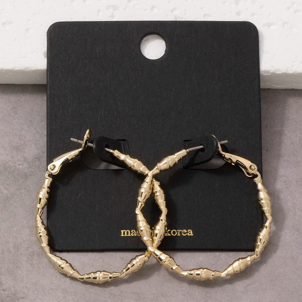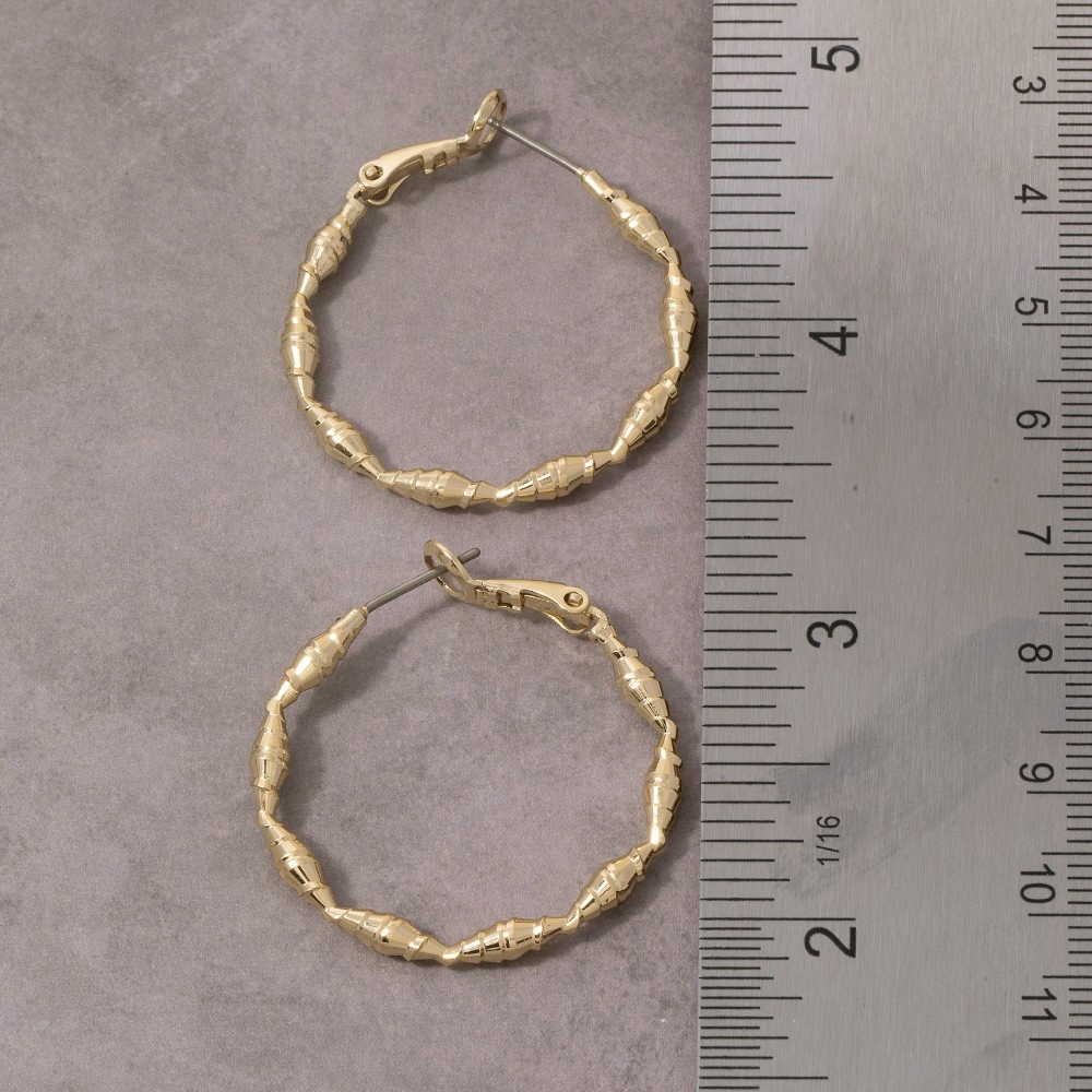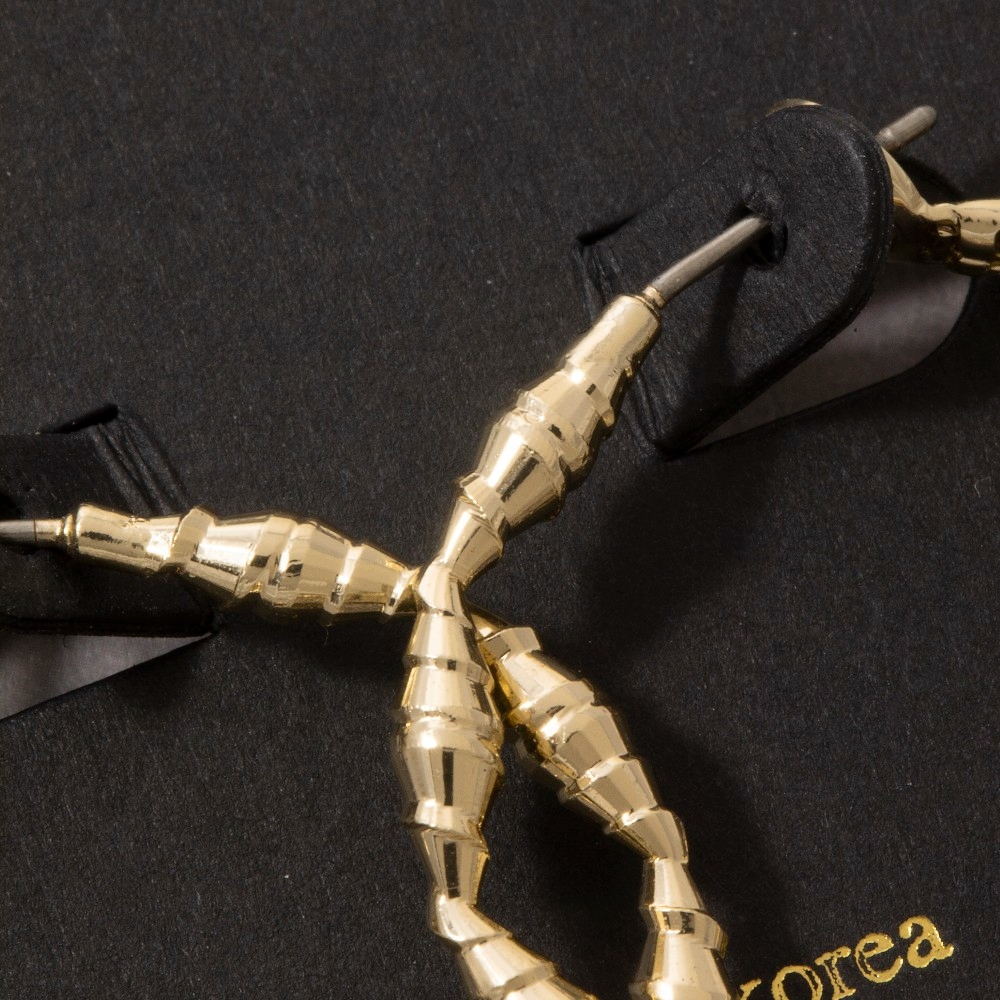 Effortlessly stylish and always on-trend, this pair of hoop earrings showcases a breathtaking bamboo node segmented large design. A must-have pair of hoop earrings for anyone who loves to add some flair to their outfits. Available in G. This item is sold in packs of 1.