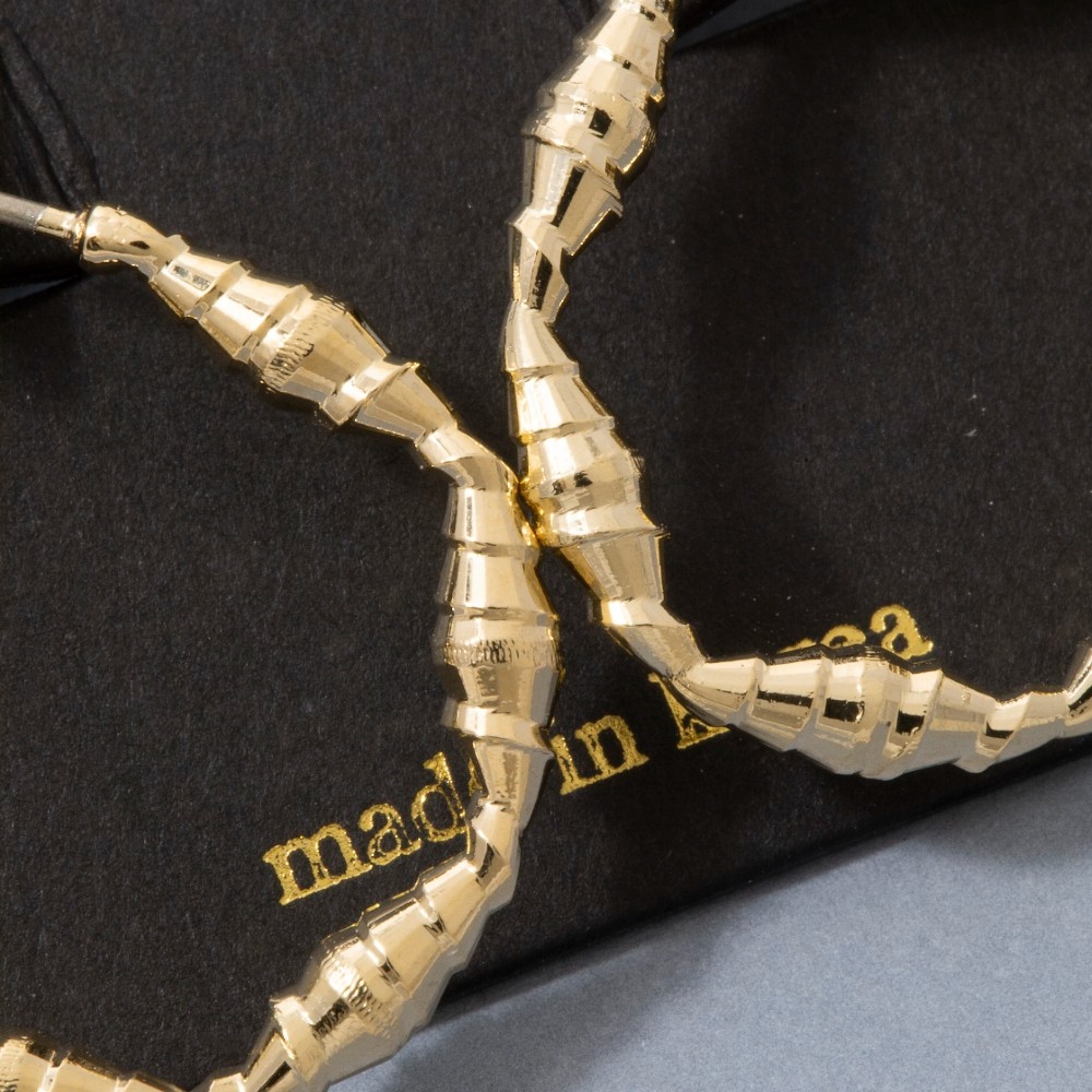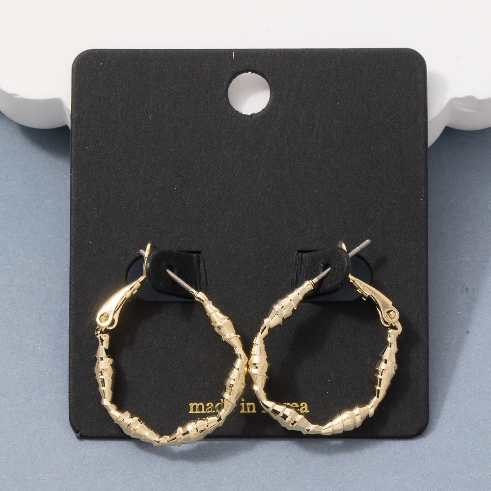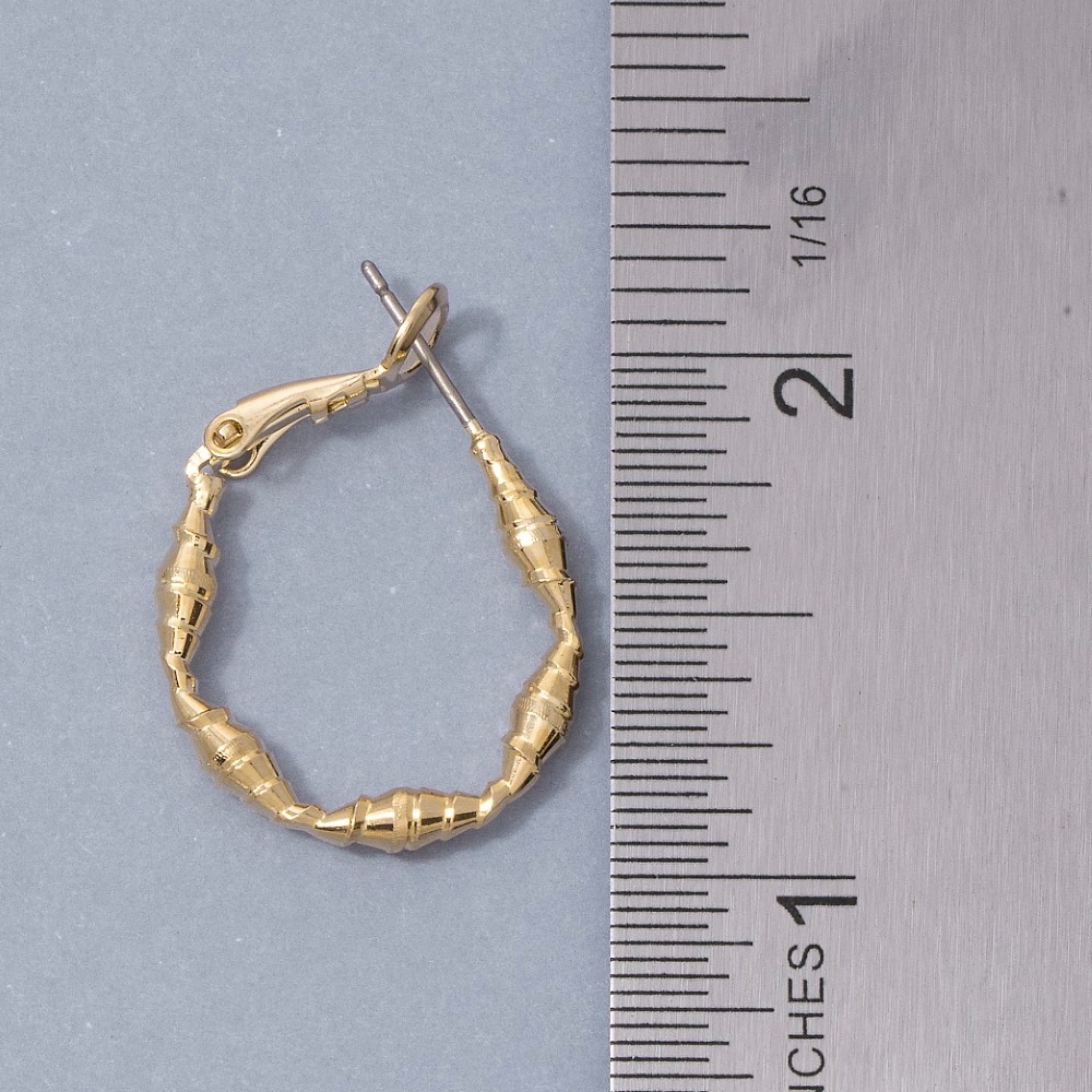 Stay ahead of the fashion curve, this pair of hoop earrings possesses a fine bamboo textured oval design. This pair of hoop earrings is the perfect finishing touch to any outfit, adding a touch of sophistication and glamour. Available in G. This item is sold in packs of 1.
