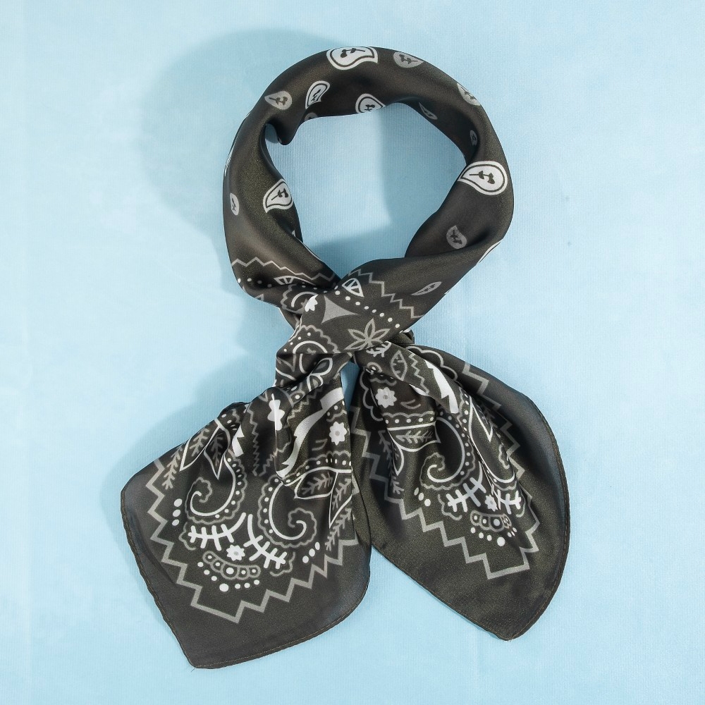 • A stunning piece that is sure to turn heads, this scarf displays a unique bandana paisley print satin square design. Elevate your style effortlessly with this versatile scarf, enhancing the appeal of any ensemble. This item is sold in packs of 12.