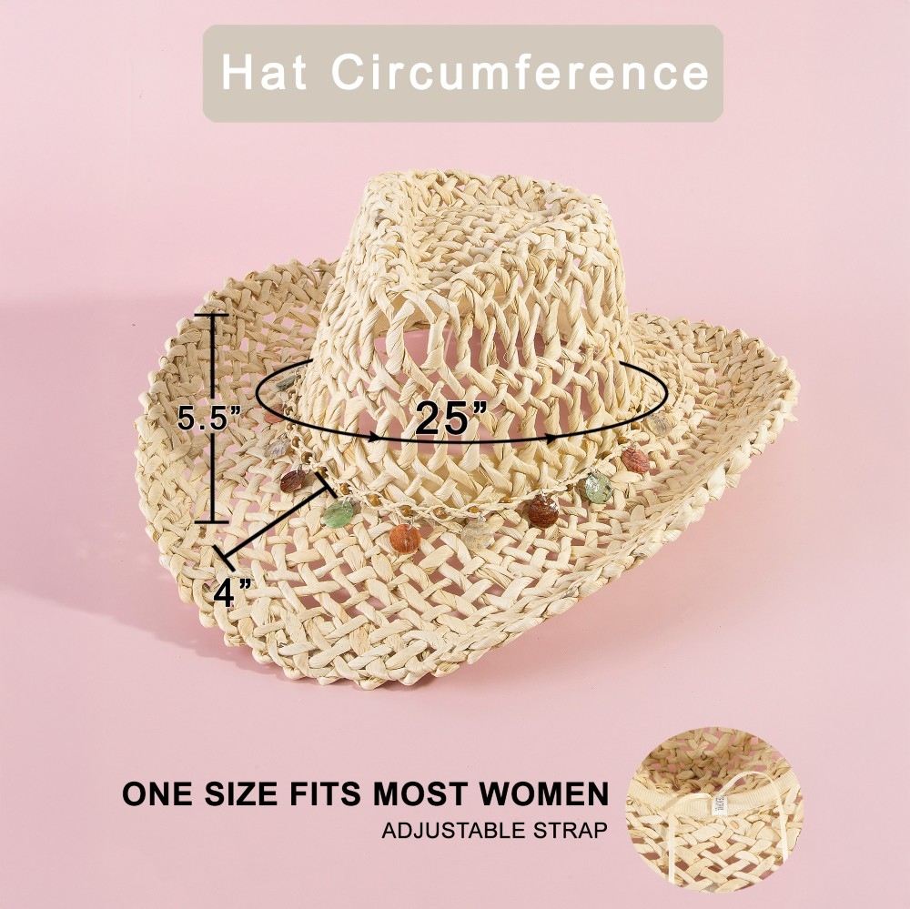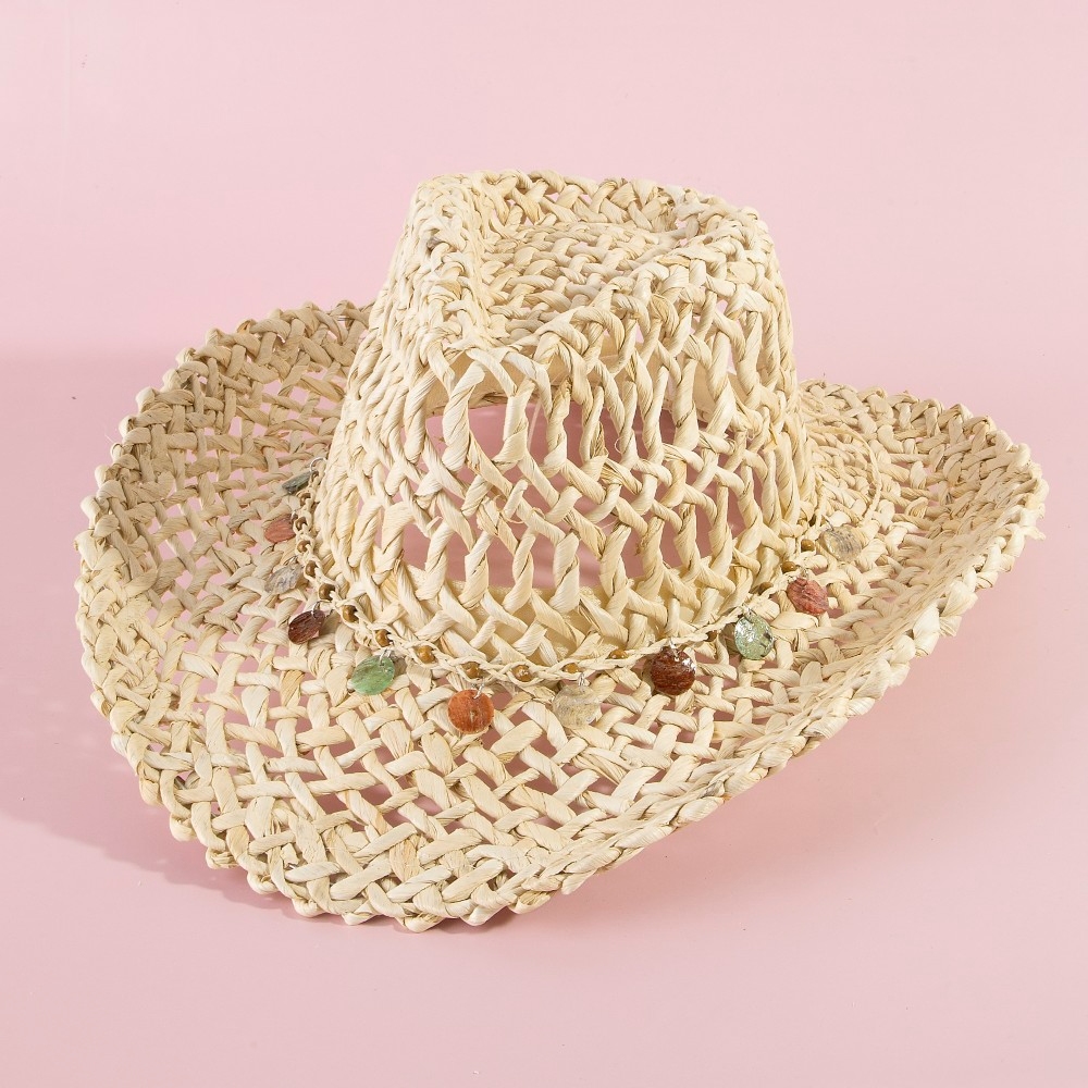 • This piece is the perfect way to add some glamour to your look, this cowboy hat embodies a sophisticated basket weave western assorted discs design. A versatile cowboy hat that's perfect for any occasion, adding a touch of elegance and style to any outfit. This item is sold in packs of 1.