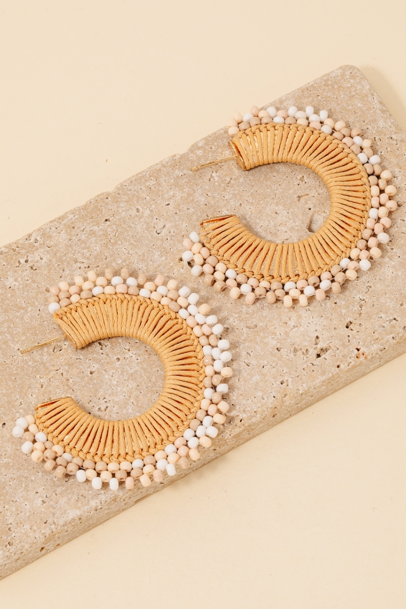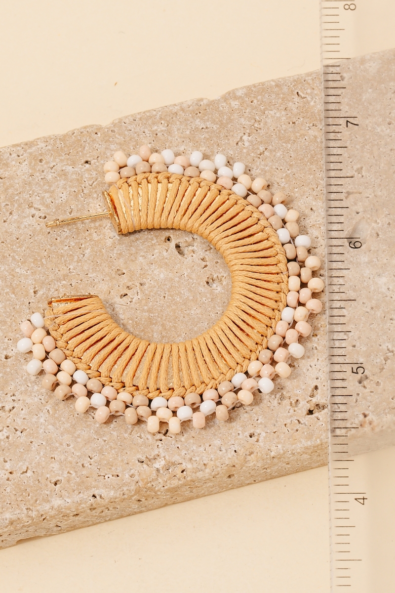 - A piece that will never go out of style, this pair of hoop earrings reveals an intricate beaded and braided flat design. Elevate your outfit with this stylish pair of hoop earrings that's perfect for any occasion. This item is sold in packs of 12.